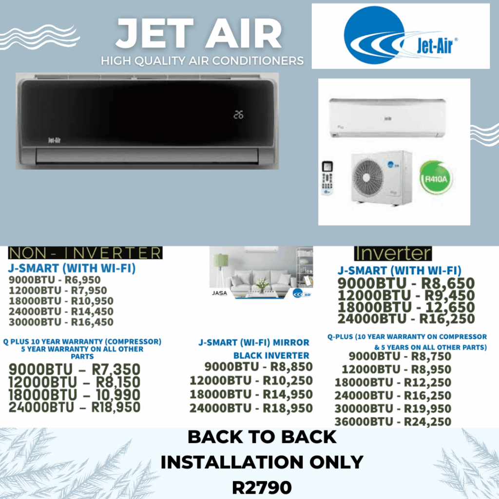 Stay Cool Year-Round with Chill Out Air Conditioning – Call 060 798 8547 Today When it comes to aircon installation, servicing, and repairs in Johannesburg, Pretoria, and Midrand, there’s one name that locals trust: Chill Out Air Conditioning. Whether you need a brand-new air conditioner for your home, a commercial system for your office, or just routine maintenance to keep your unit running efficiently, our team has the expertise, experience, and affordable solutions you need. We make it simple to stay comfortable year-round. Call us today on 060 798 8547 or visit us at 408 Carlswald North Lifestyle Estate, Carlswald, Midrand 1684. Our friendly team is ready Monday to Saturday, 9am – 6pm, to help you find the perfect air conditioning solution. Book A Specialist Affordable Aircon Installations and Repairs At Chill Out Air Conditioning, we specialize in affordable aircon installations across Johannesburg, Pretoria, and Midrand. Our technicians are highly trained to install a wide range of systems, from small residential units to large commercial air conditioning systems. Every installation is handled with precision to ensure optimal cooling, energy efficiency, and long-lasting performance. We understand that a properly installed aircon not only keeps your space comfortable but also saves you money on electricity bills. That’s why we recommend professional installation for every unit, whether it’s a split system, inverter aircon, mirror AC, or portable unit. Call us now on 060 798 8547 and let us help you choose the right system for your space. https://chill-out.co.za/wp-content/uploads/2025/09/AQNJSh1X0Z23ceKr5IJgBWs6YwVDZNJc7k2fPVus6HLv8pIJ9tHvZby8yvIWWFxOwgAEGqFHApyk7Cfb8MIsAaBrTsze_VEln4_xYwYH9r2UUHP2pg.mp4 Affordable Air Conditioners for Every Budget Looking for a new aircon? Chill Out Air Conditioning offers a wide range of affordable air conditioners, including: Alaska Air Conditioner Series (9000 BTU – 24000 BTU) DC Inverter Models Mirror AC Units with Wifi Jet Air J-Smart Series Q-Plus Air Conditioners with 10-Year Warranty No matter your budget or space requirements, our team can help you select the perfect unit. Visit our shop or call 060 798 8547 to get a quote today. For more details on units, pricing, and special offers, check out Affordable Aircon. Visit Us or Call Now We’re conveniently located at 408 Carlswald North Lifestyle Estate, Carlswald, Midrand 1684, and our doors are open Monday to Saturday, 9am – 6pm. For fast, reliable, and affordable aircon installation, servicing, and repairs, call Chill Out Air Conditioning on 060 798 8547 today. 📞 Call or WhatsApp: 060 798 8547🌐 Learn more or shop online: Affordable Aircon Stay cool, stay comfortable, and let Chill Out Air Conditioning take care of all your aircon needs. Don’t wait for the heat—call us now!